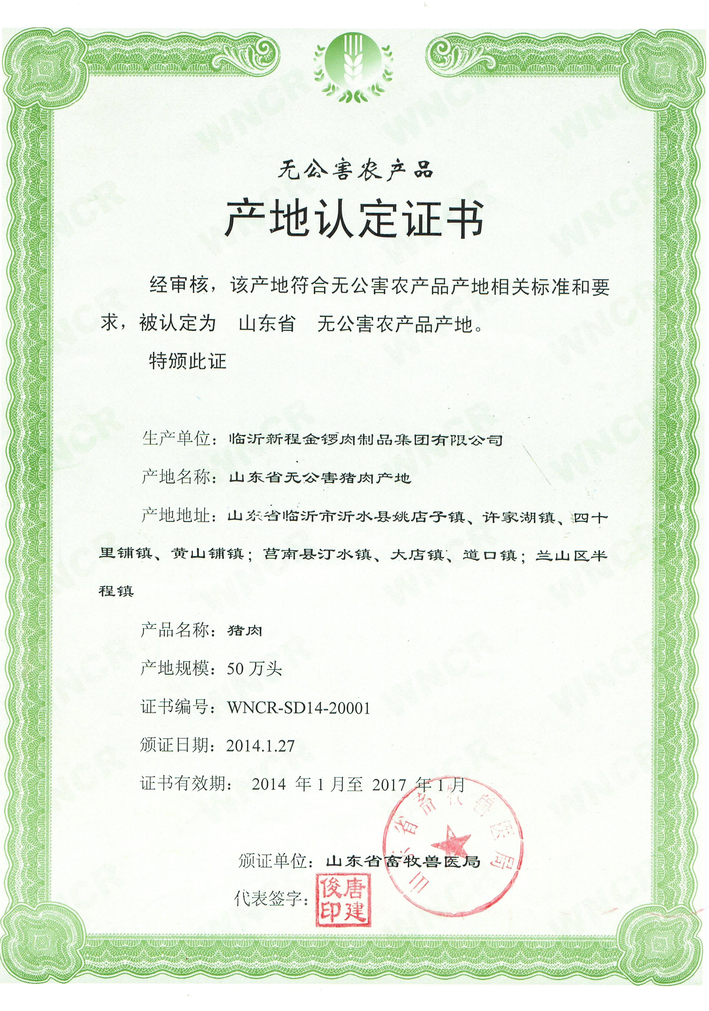 無(wú)公害產(chǎn)地認(rèn)定證書
